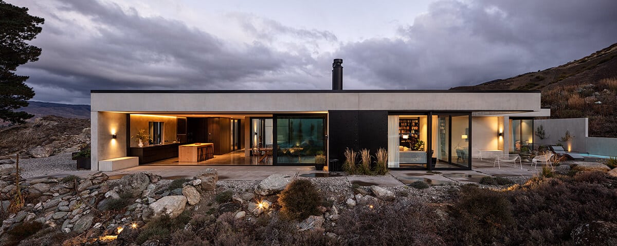 In Central Otago, in Black Quail House by Bergendy Cooke, Home of the Year 2021, coloured concrete speaks of protection and permanence.