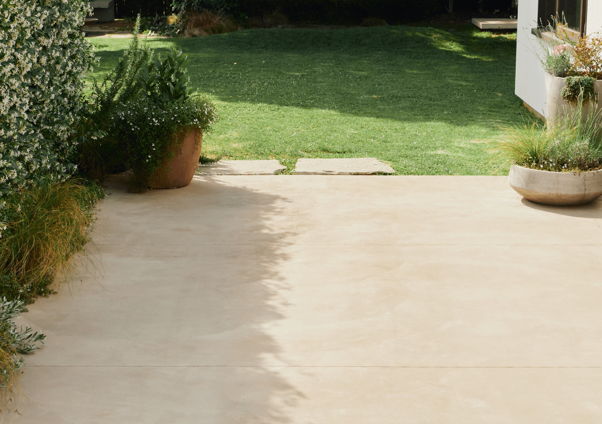 SINGULAR STYLE Fantastic for forging a visual connection between indoors and out, and easily cleaned and maintained, concrete’s a no-brainer for functionality and fashion. Its industrial look is undeniably contemporary and can also be polished to up the luxe. Make a major statement with a bright colour, or follow in architect Maria and builder James’s footsteps and opt for the understated sophistication of a neutral to complement greenery outside (planted here by Landscape & Ecology) and timber inside. Either way, you can be sure it’ll last the distance, as the UV-stable iron oxide used to tint it is blended all the way through; it won’t fade, chip or wear — but will develop a striking patina for an effect unique to you.