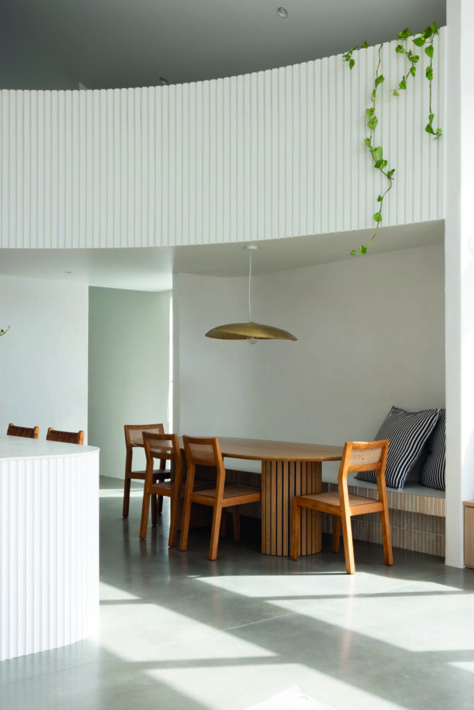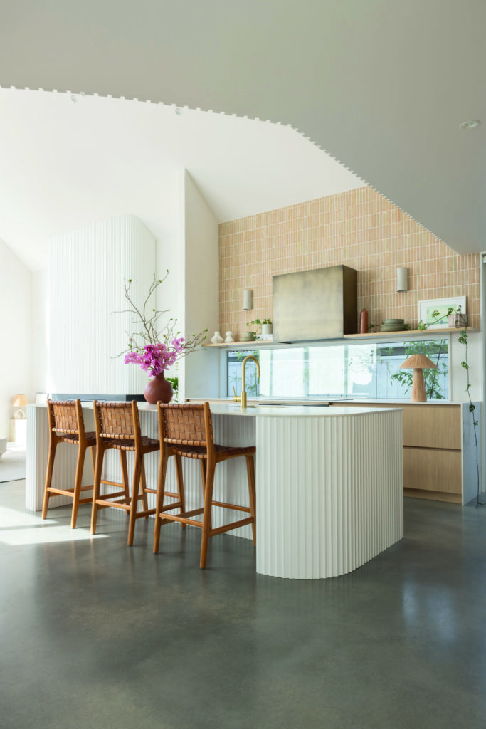 Textural effects are one of concrete’s strengths, from the simplicity of a smooth-trowel approach, to grinding to expose the aggregate, to the natural patina it develops with time. Sealing or polishing protects from stains, and makes for easy cleaning and maintenance, all of which aligns perfectly with the thrills and inevitable spills of family life. As Hat says, “The added beauty of concrete is it’s very difficult to destroy!”