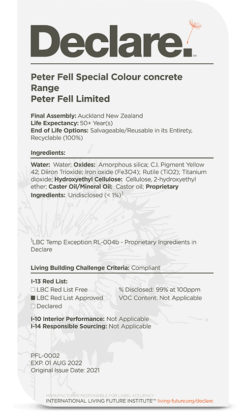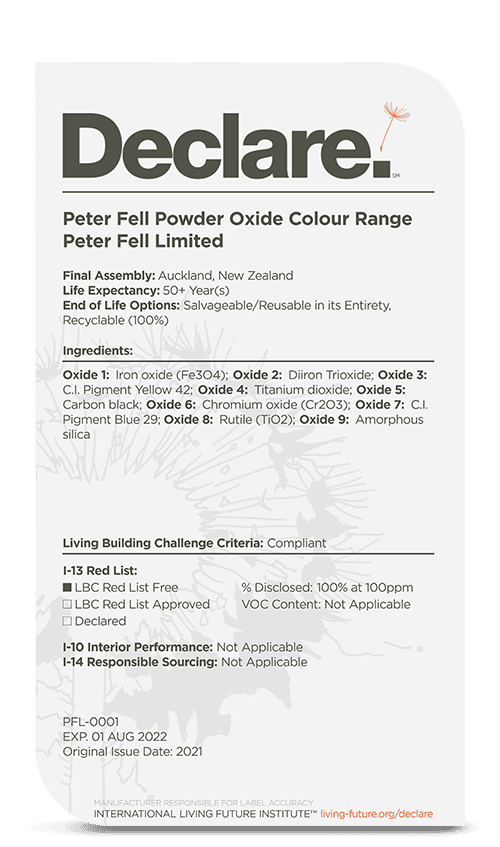 Developed by the International Living Future Institute™, Declare labelling provides transparency around where a product comes from, what it’s made of, and where it goes at the end of its life.