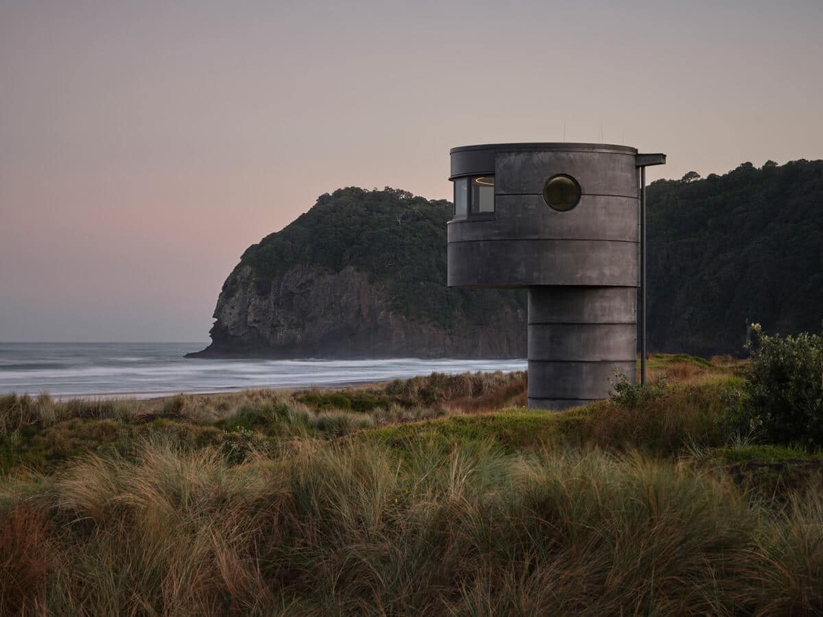 There’s a new surf life-saving tower on North Piha Beach. It’s circular, sculptural, made almost entirely of concrete, and coloured with PeterFell’s 699 SuperBlack oxide — a shade that speaks to the famously dark and rugged West Coast.