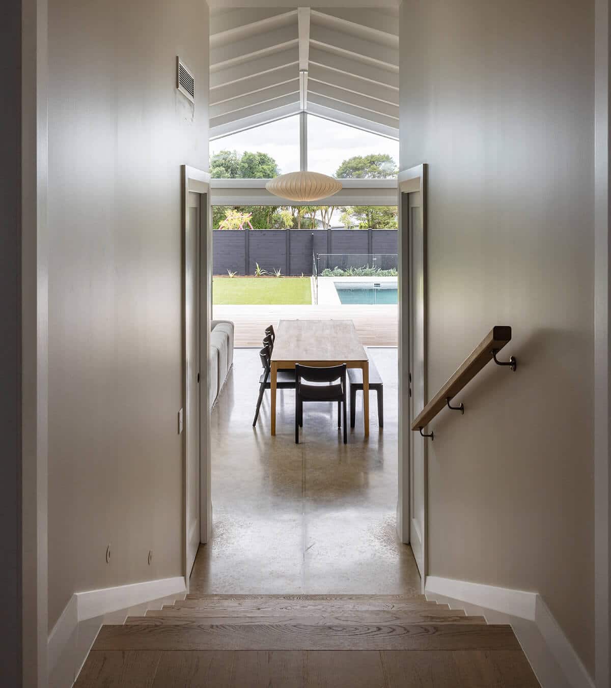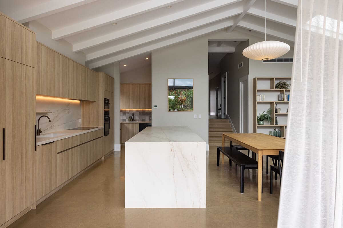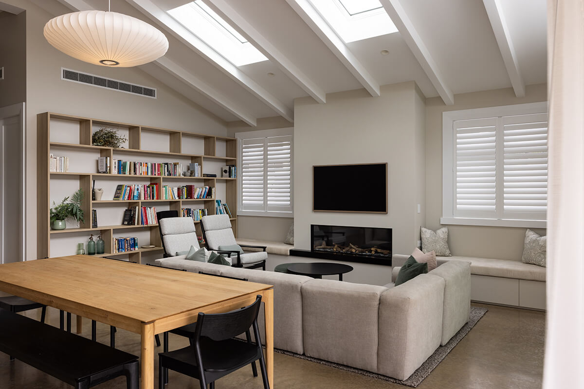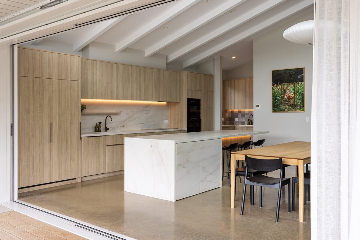 Polished concrete floors in the extension were used for their warmth, durability and style. “We tinted the concrete colour to tie into the warm tones used throughout.”